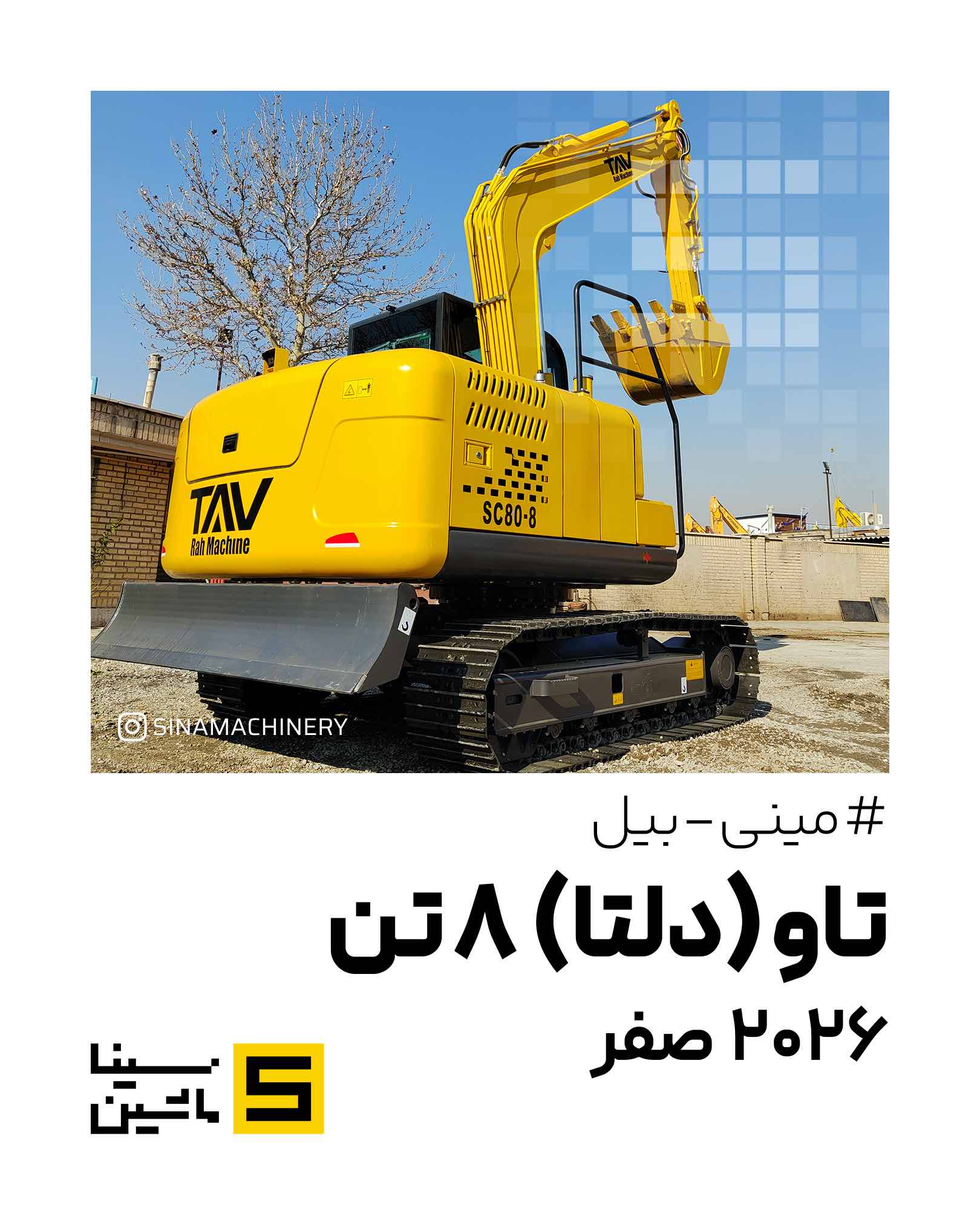 مینی بیل ۸ تن دلتا مدل TAV SC80 مجهز به موتور ۷۵ اسب یانمار ژاپن محصول جدید شرکت تاو راه ماشین به عنوان زیرمجموعه شرکت دلتا راه ماشین است. پیش تر مینی بیل ۶ تن دلتا تولید شرکت دلتا راه ماشین به عنوان یکی از بزرگترین تولید کنندگان ماشین آلات راهسازی فروش بسیار خوبی در بازار ایران داشت حالا با عرضه مینی بیل با سایز بزرگتر رنج وسیعتری از بیل مکانیکی را پوشش میدهد.